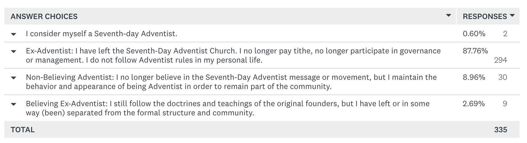 I think this is why I don’t really let myself think about Adventism too much–it deprived me of a lot of peace, joy, and opportunity and reflecting on it doesn’t lead to anything productive–at least it didn’t before taking this survey.